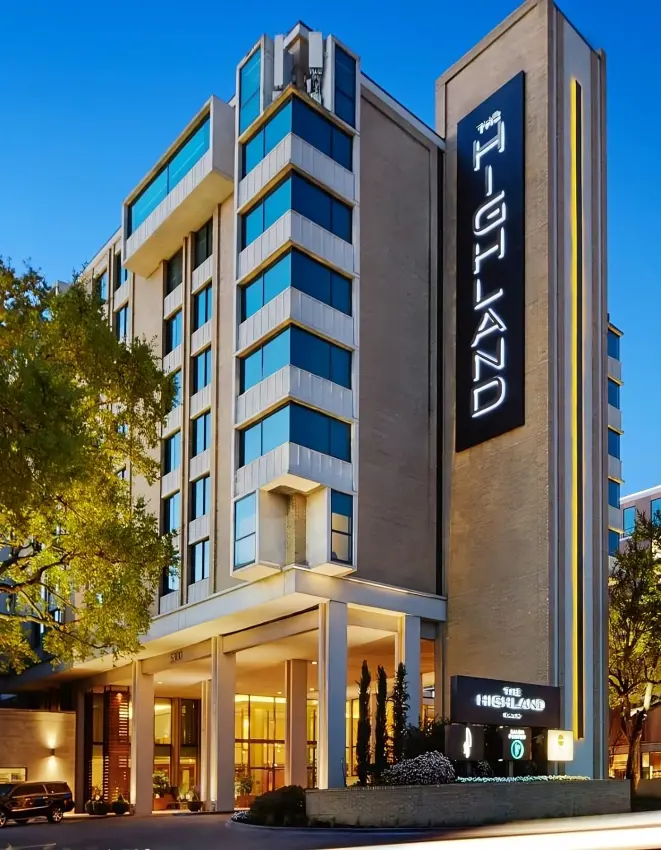 One of the best hotels in Dallas Texas, The Highland Dallas, formerly the Hilton Inn Dallas, has been revamped into a stylish retreat in Highland Park. It offers 204 cozy rooms and suites, along with amenities like a heated pool, spa, fitness center, and art collection.