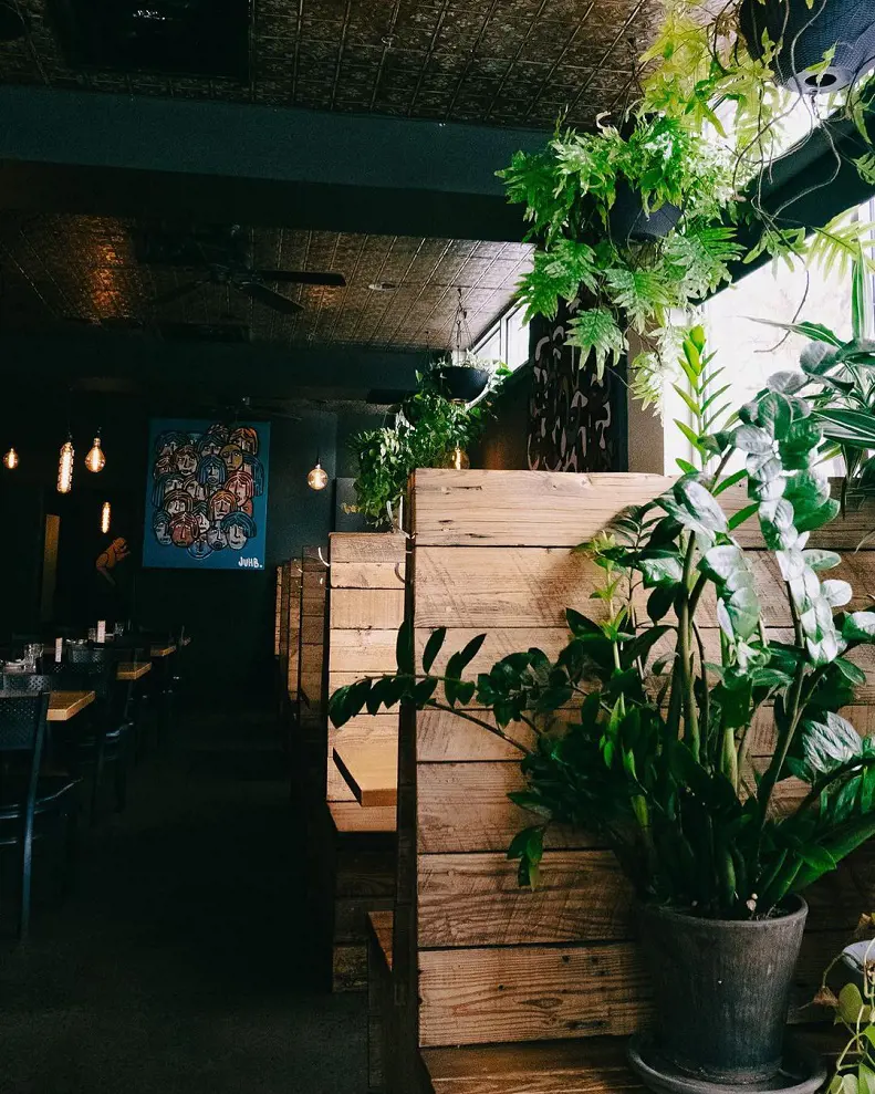 The atmosphere at Root Down is like a warm hug. The rustic-chic décor with exposed brick and reclaimed wood creates a cozy ambiance.