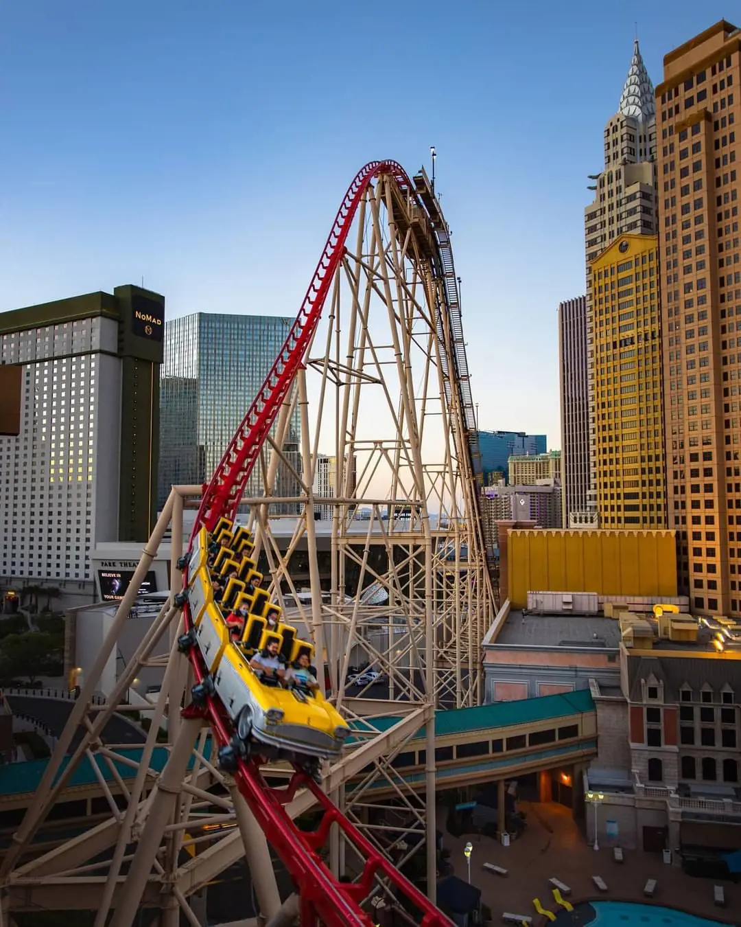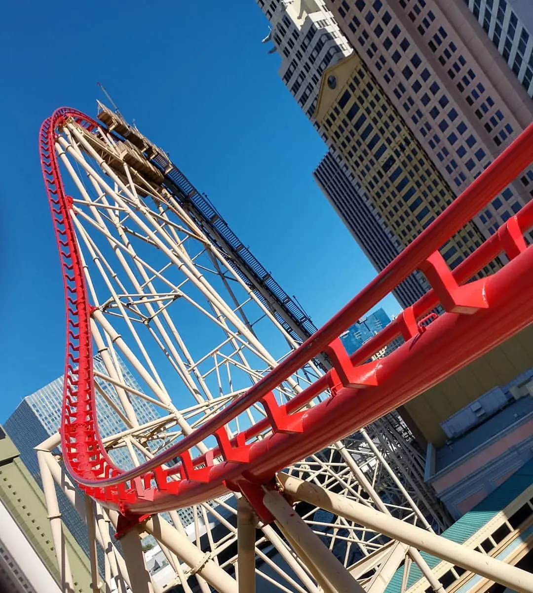 The Big Apple Coaster, a steel hyper Las Vegas roller coaster will whisk you away on an exhilarating journey through the New York skyline. It is nestled in one of the hotels in Las Vegas, New York-New York Hotel.