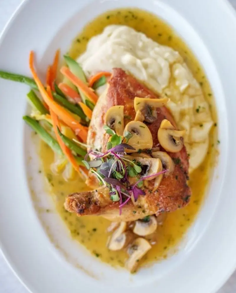 Guests can start their meal with the raw bar or a hot appetizer such as mussels braised with bacon and beer or white wine and garlic. The pan-roasted Scottish salmon or the market fresh fish are a must-try here.