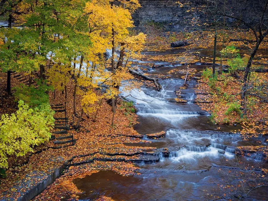 Just a short drive away, it is located north of the city on Cayuga Lake's eastern shores. The waterfall is within the Ludlowville and is visible from both below and above.