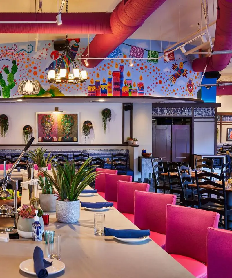 It is the third NYC restaurant location designed with iconic bold colors and rich architectural details.
