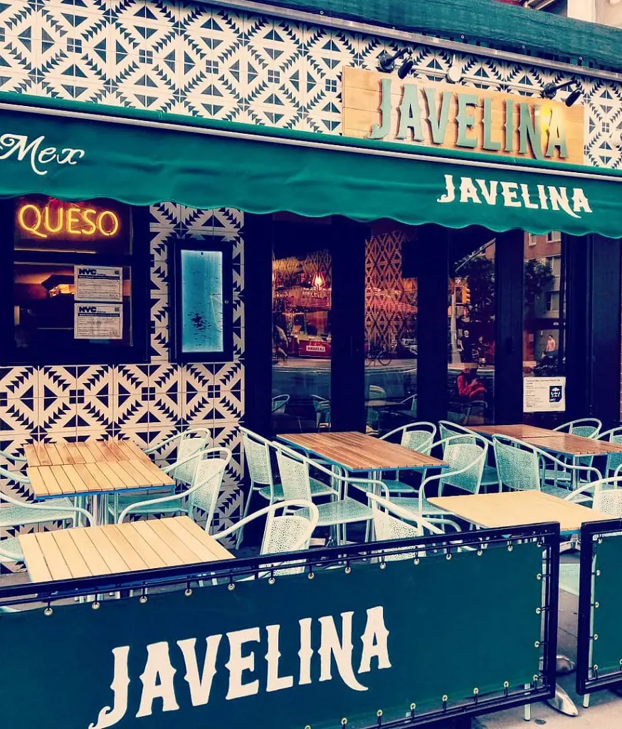 Javelina is the NYC's first authentic Tex-Mex restaurant. It is known for its fresh tortillas, award-winning margaritas, Texas chili, and queso.