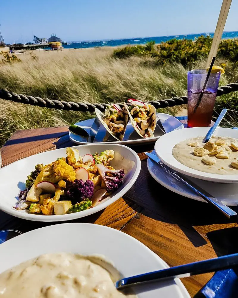 They also feature an outdoor deck on the beach during the warmer months. They serve farm-to-table cuisine and their menu changes with the seasons. The restaurant further uses locally sourced food whenever possible.